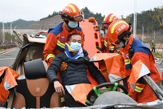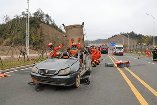 人民網定南2月9日電 近日,為提升消防救援隊伍車輛救援事故處置水平,有效加強各部門之間的聯動配合、協同作戰、應急處置能力,江西省定南縣消防救援大隊聯合縣交警、醫療等部門在清華大道開展交通事故綜合救援實戰演練。